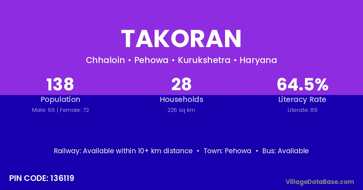According to Census 2011 information, the village code of Takoran village is 136119.