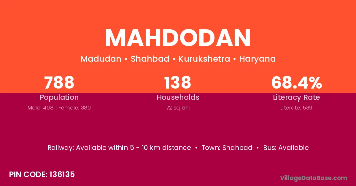 According to Census 2011 information, the village code of Mahdodan village is 136135.