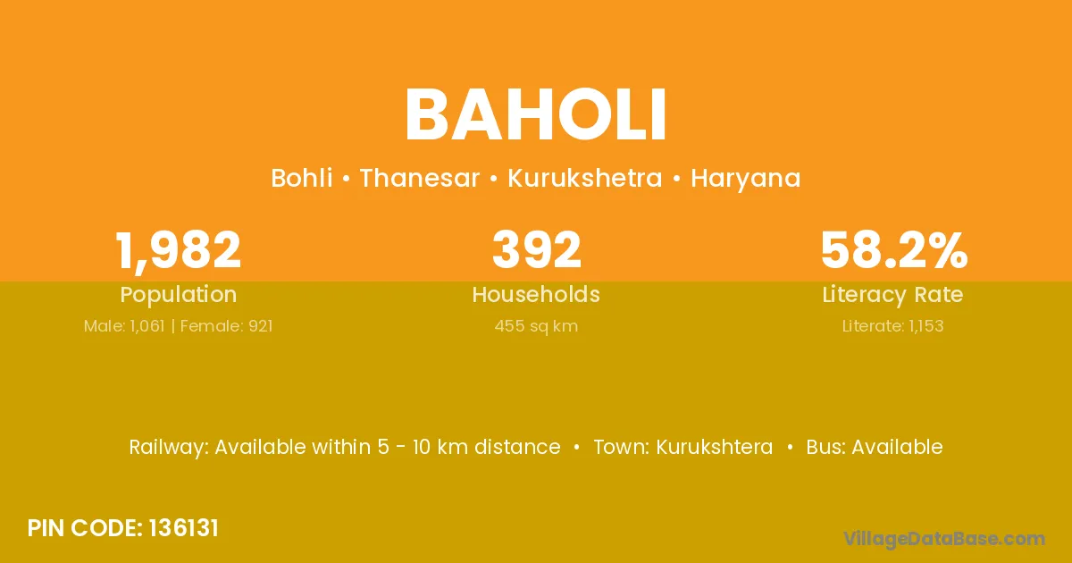 Kurukshtera is the nearest town to Baholi village for major economic activities