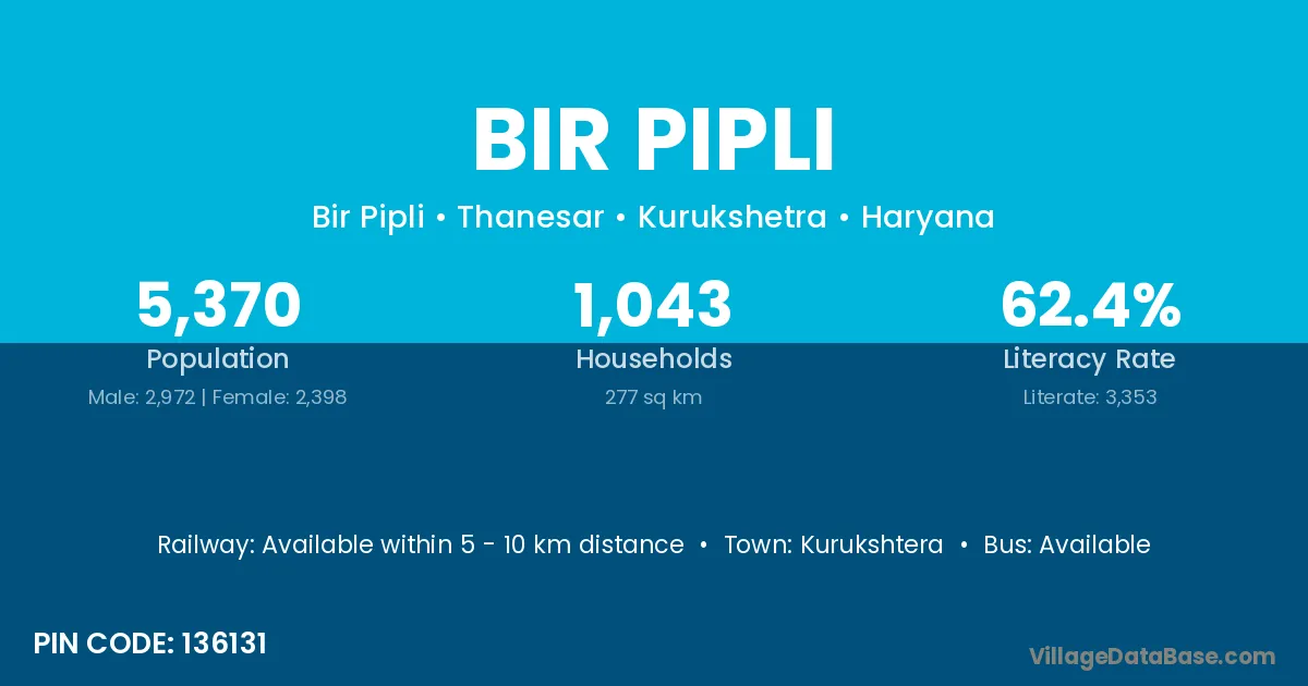 Kurukshtera is the nearest town to Bir Pipli village for major economic activities