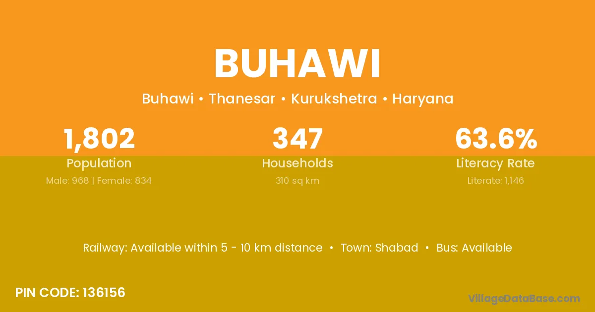 Buhawi village has a total population of 1,802 people, of which 968 are males and 834 are females.
