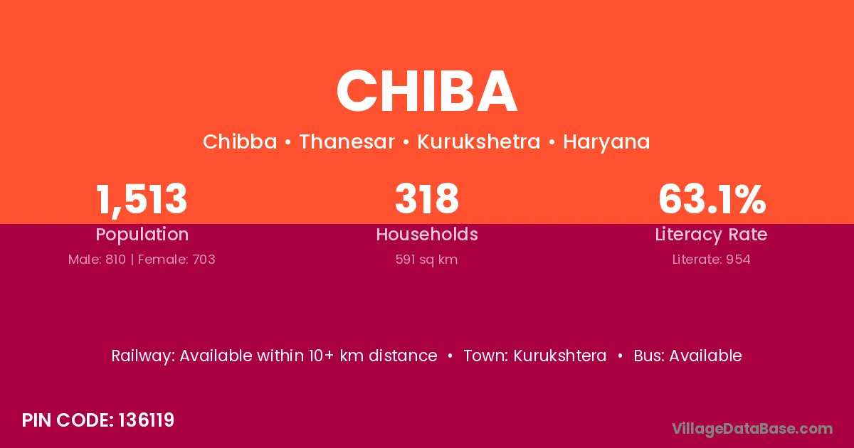 Kurukshtera is the nearest town to Chiba village for major economic activities
