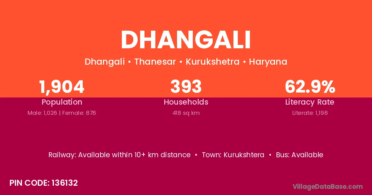 Kurukshtera is the nearest town to Dhangali village for major economic activities
