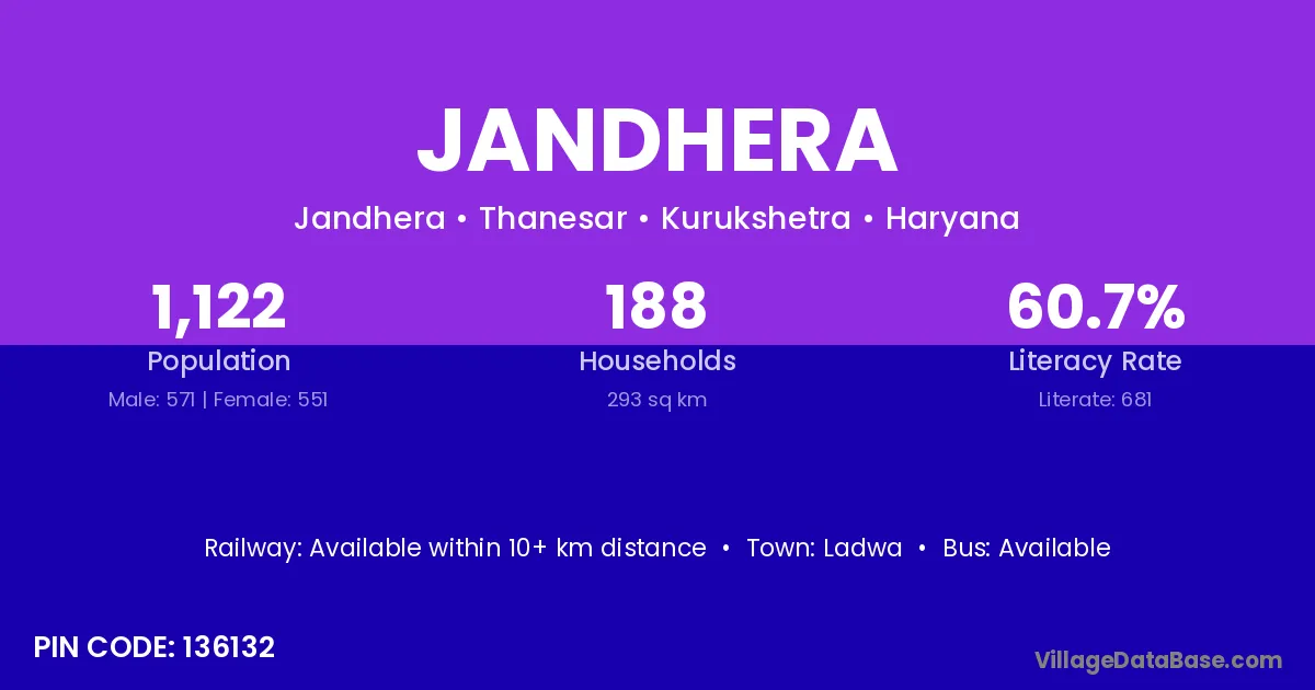 According to Census 2011 information, the village code of Jandhera village is 136132.