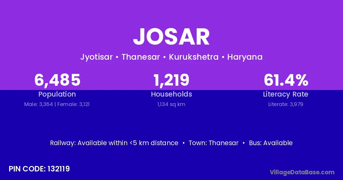 Josar village has a total population of 6,485 people, of which 3,364 are males and 3,121 are females.