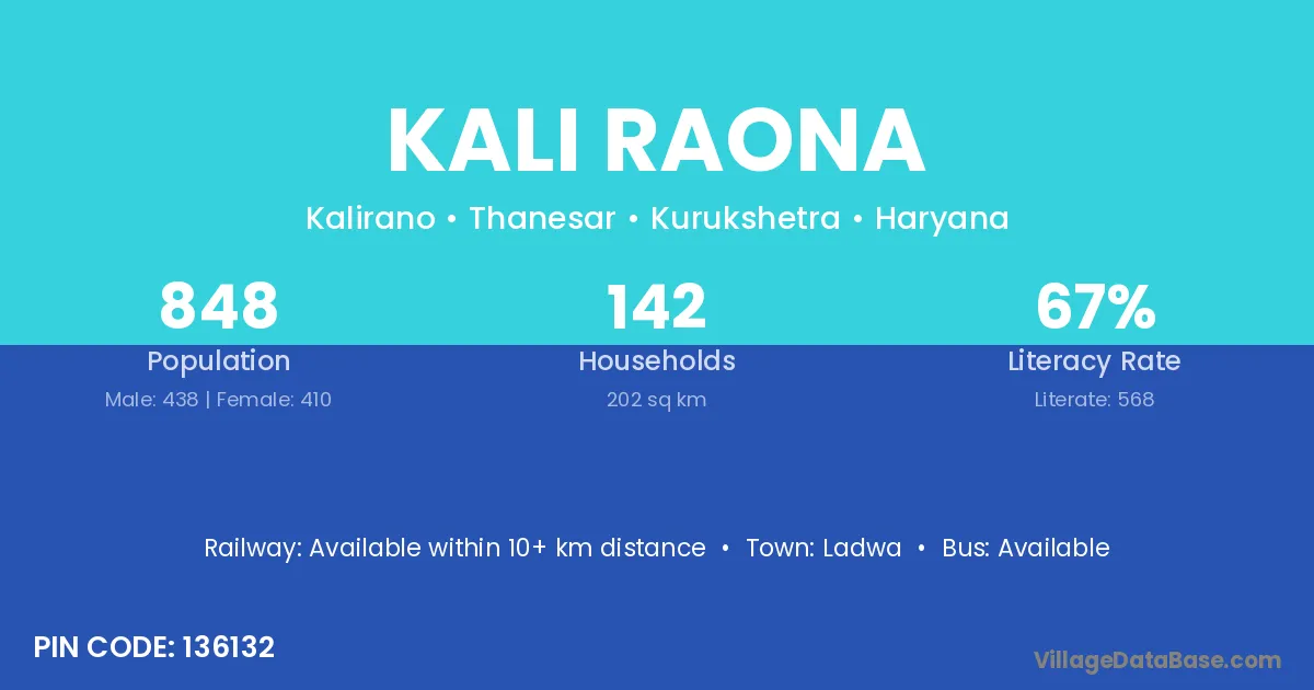 Ladwa is the nearest town to Kali Raona village for major economic activities