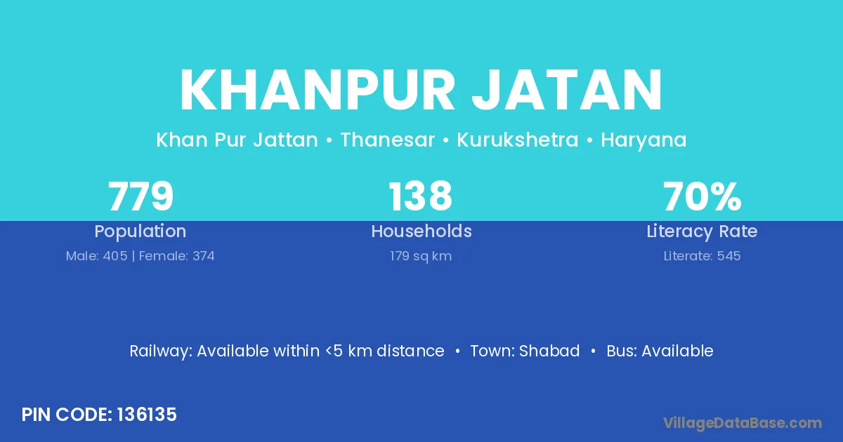 Khanpur Jatan village has a total population of 779 people, of which 405 are males and 374 are females.