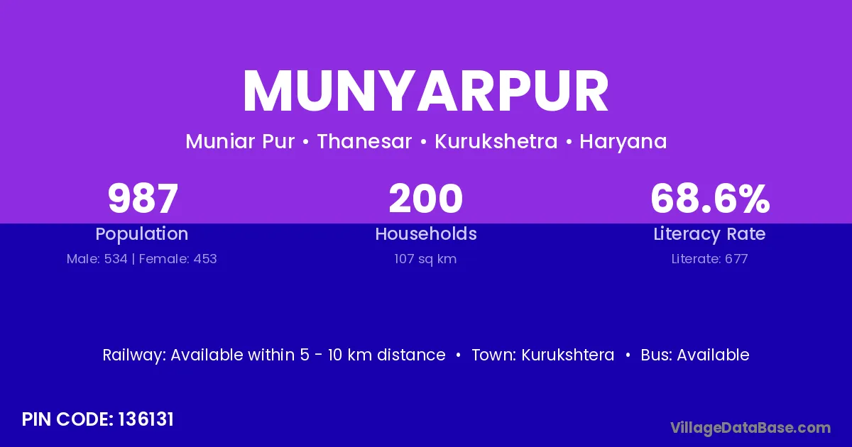 Kurukshtera is the nearest town to Munyarpur village for major economic activities