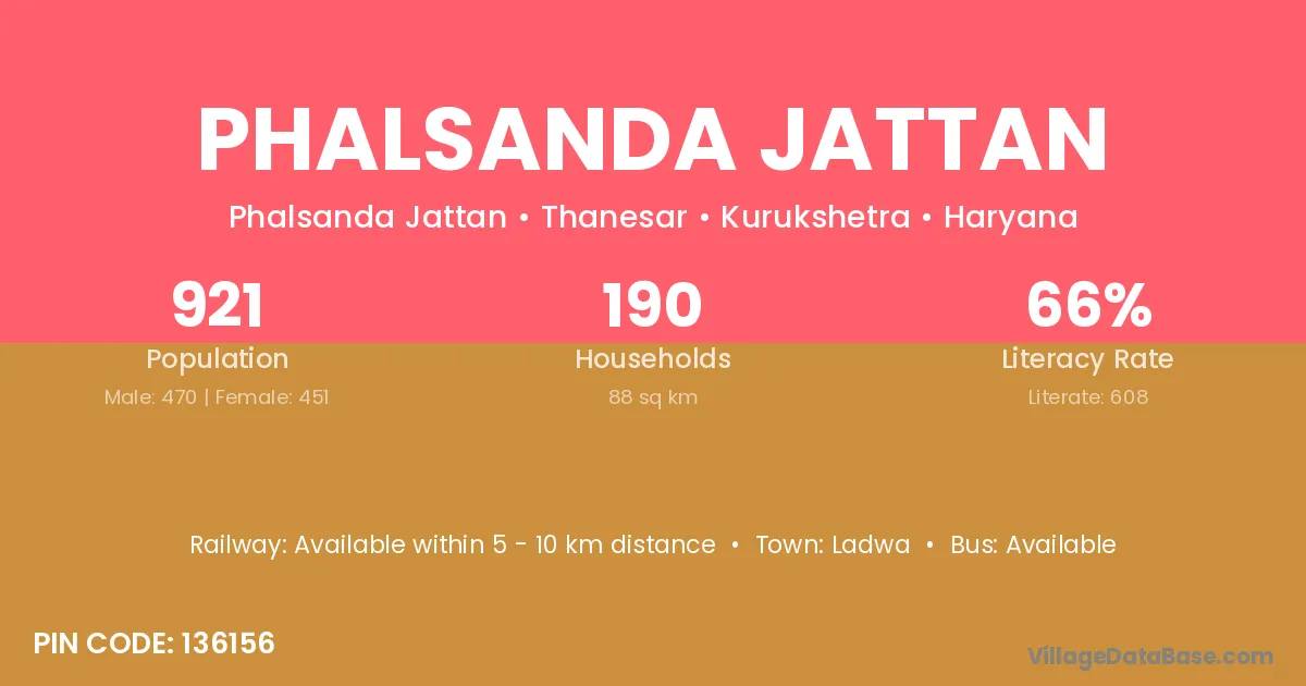 Phalsanda Jattan village has a total population of 921 people, of which 470 are males and 451 are females.