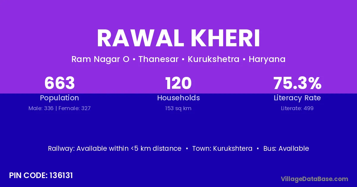Rawal Kheri village has a total population of 663 people, of which 336 are males and 327 are females.