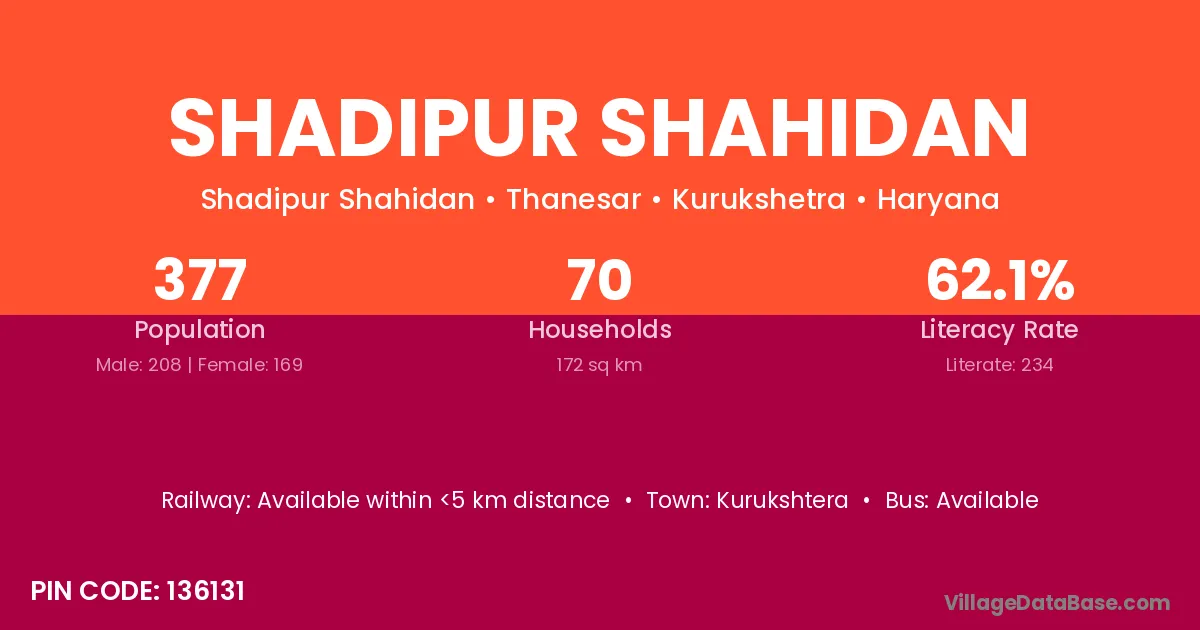 Kurukshtera is the nearest town to Shadipur Shahidan village for major economic activities