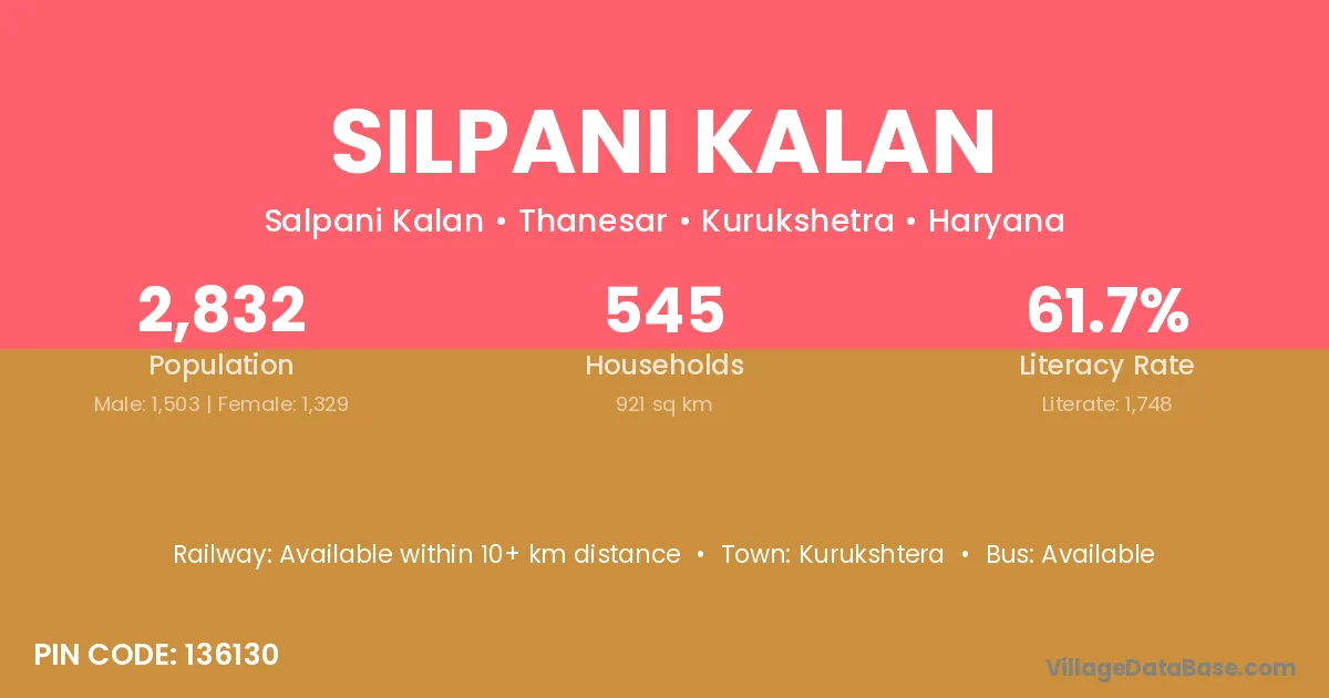 Silpani Kalan village has a total population of 2,832 people, of which 1,503 are males and 1,329 are females.