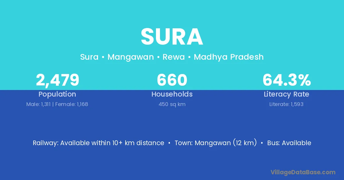 Sura village has a total population of 1,138 people, of which 601 are males and 537 are females.