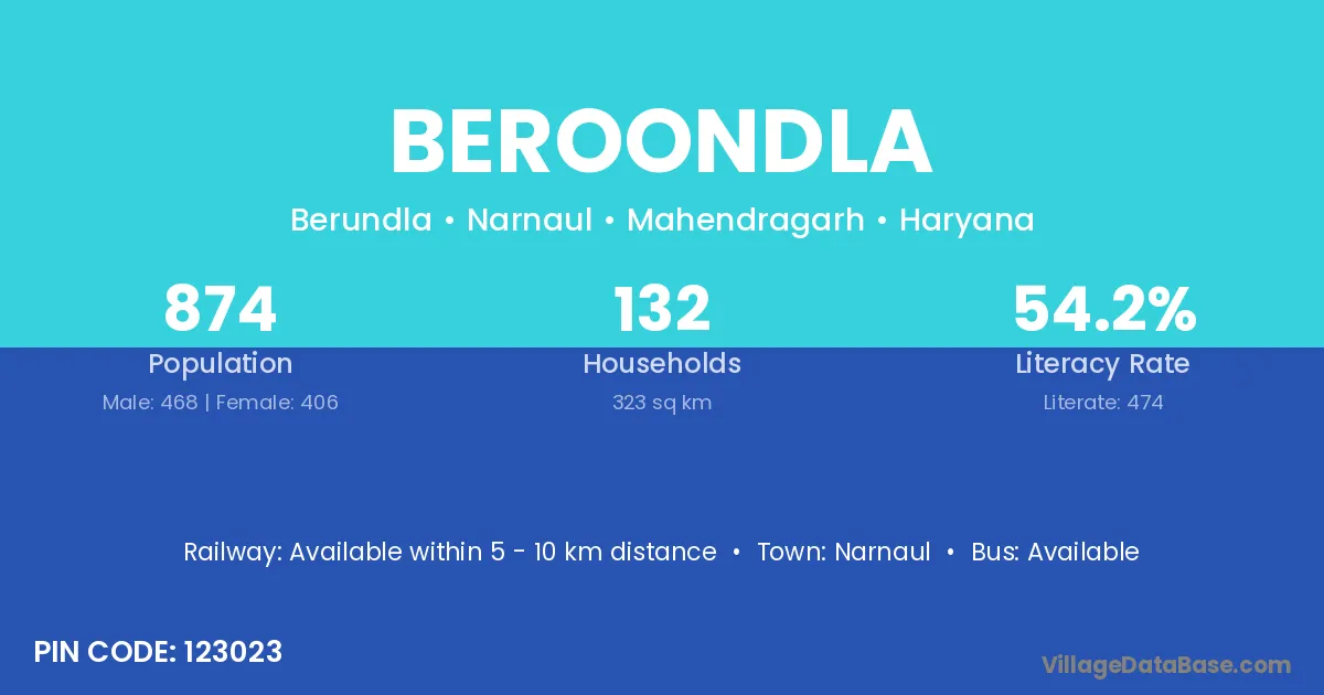 According to Census 2011 information, the village code of Beroondla village is 123023.