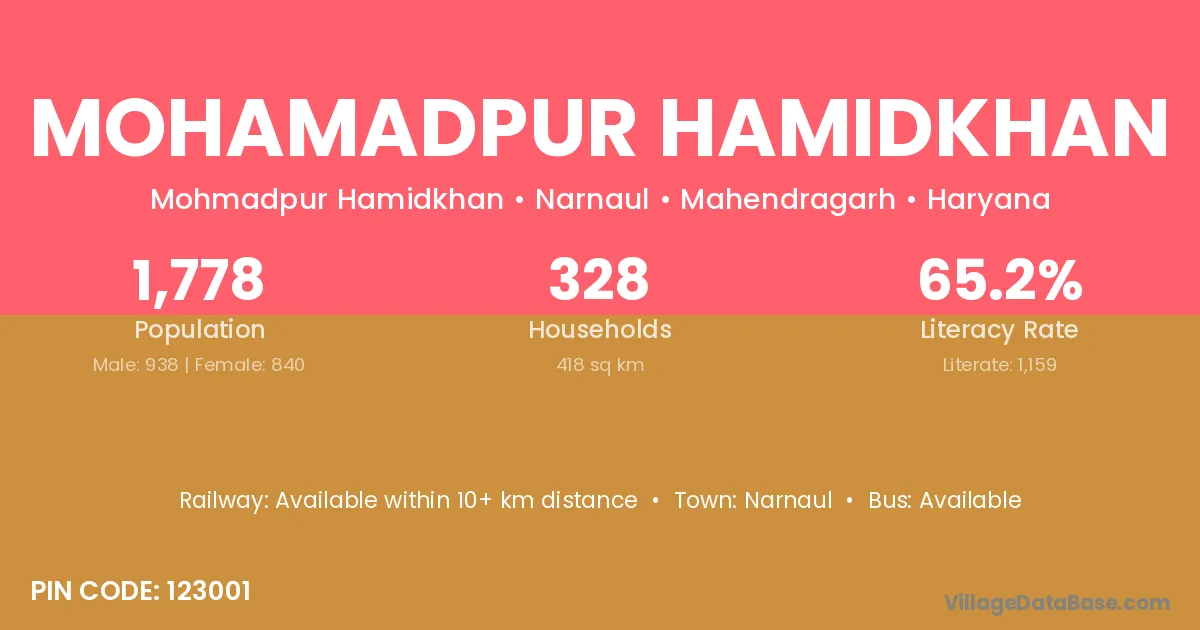 Narnaul is the nearest town to Mohamadpur Hamidkhan village for major economic activities