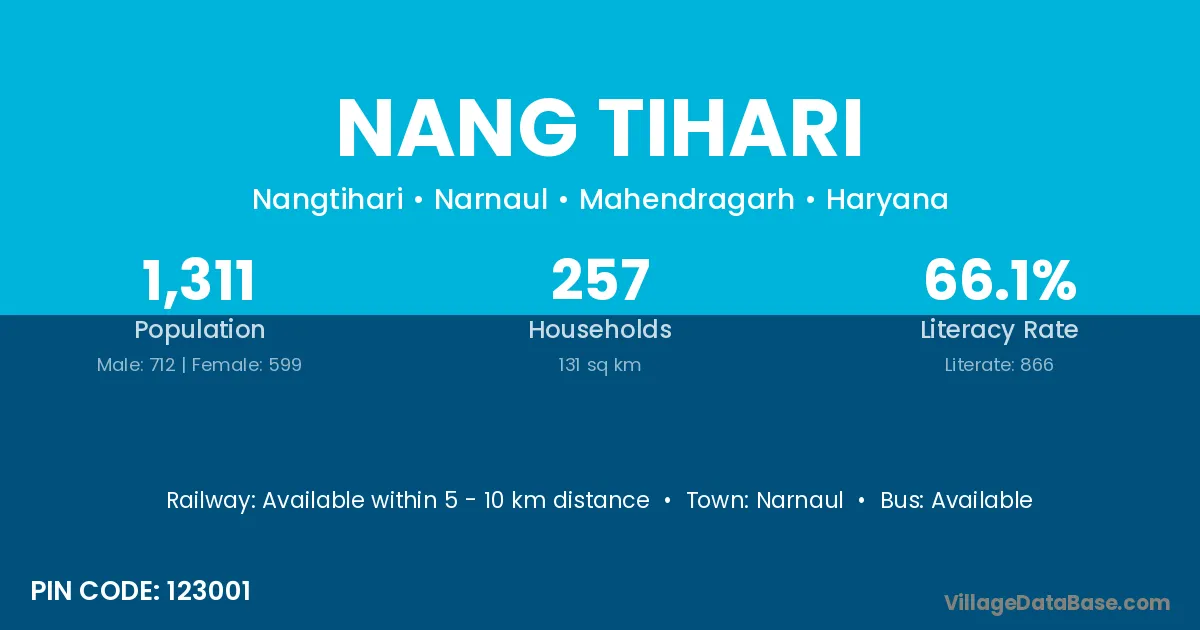 Nang Tihari village has a total population of 1,311 people, of which 712 are males and 599 are females.