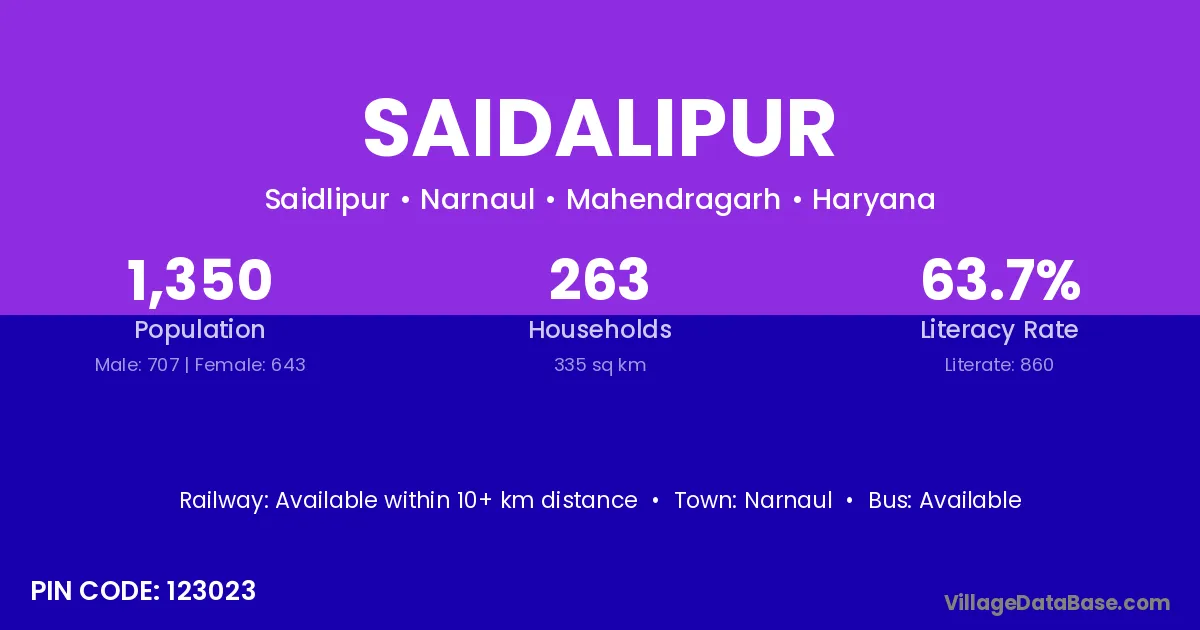 Narnaul is the nearest town to Saidalipur village for major economic activities