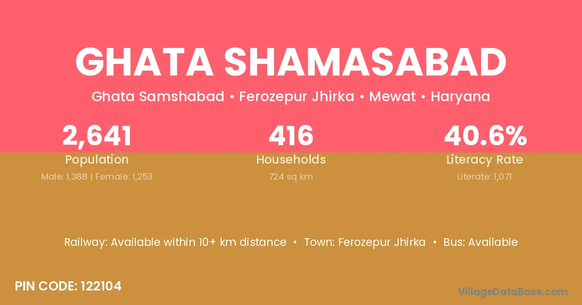 Ghata Shamasabad village is located in the Ferozepur Jhirka Tehsil of the Mewat district in Haryana .