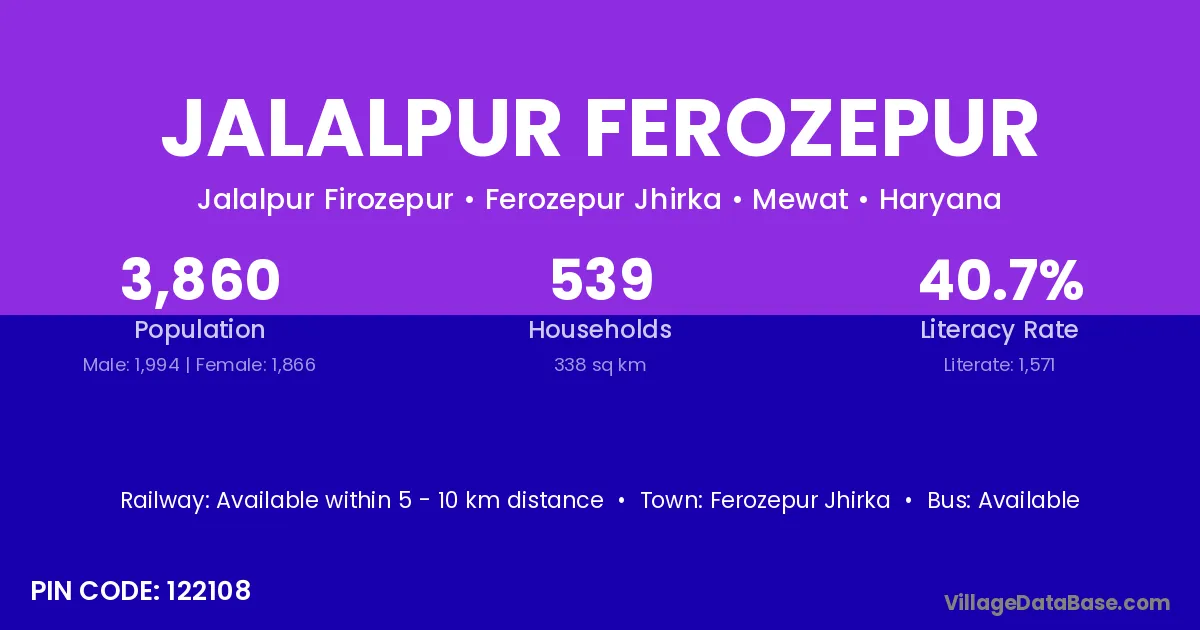 Ferozepur Jhirka is the nearest town to Jalalpur Ferozepur village for major economic activities