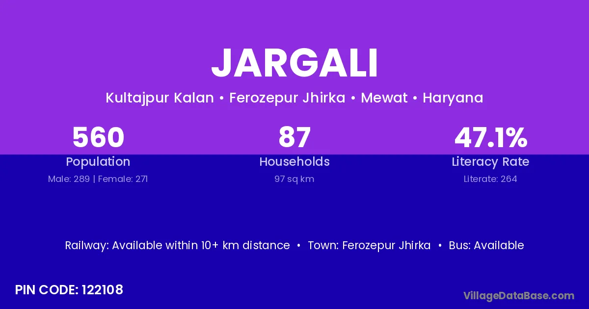 According to Census 2011 information, the village code of Jargali village is 122108.