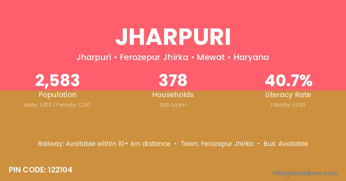 Jharpuri village has a total population of 2,583 people, of which 1,353 are males and 1,230 are females.