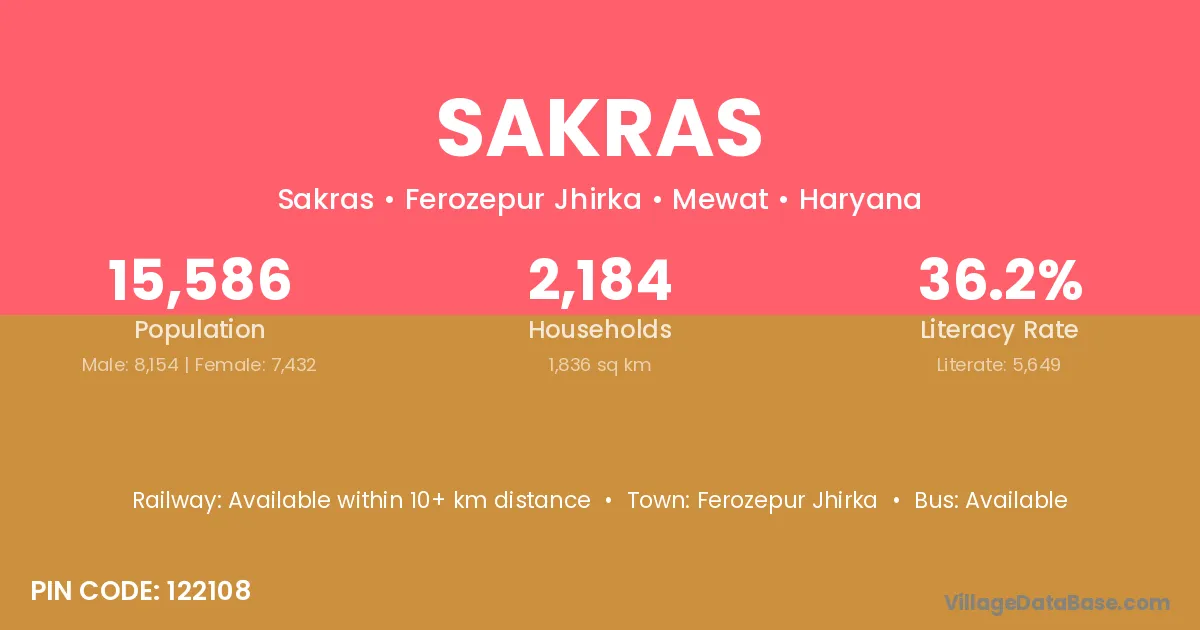 According to Census 2011 information, the village code of Sakras village is 122108.