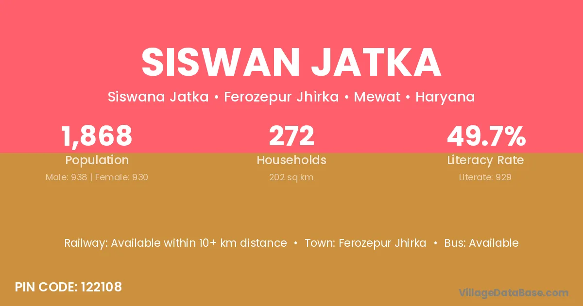 Ferozepur Jhirka is the nearest town to Siswan Jatka village for major economic activities