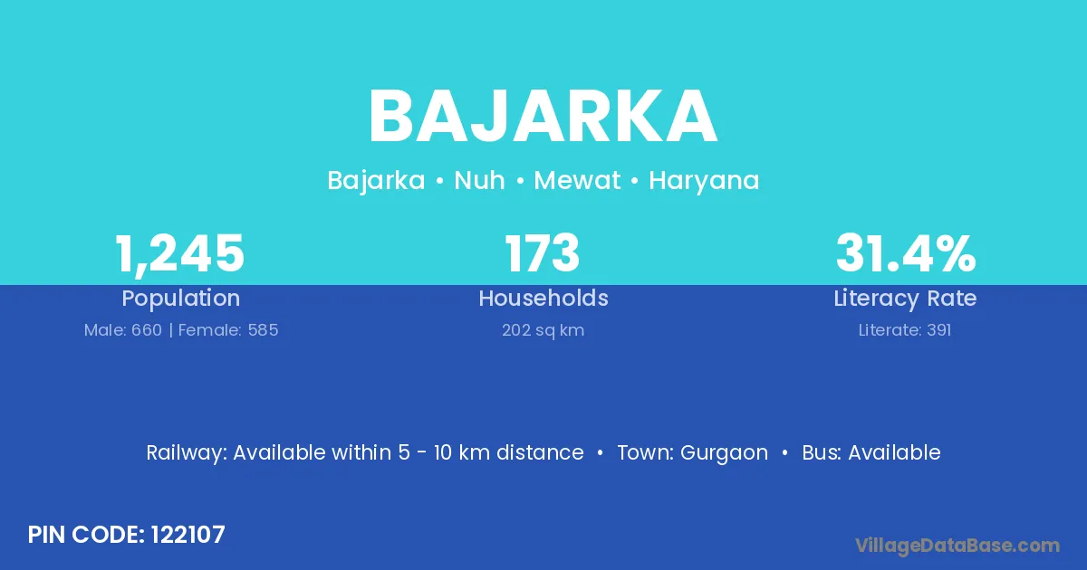 Bajarka village has a total population of 1,245 people, of which 660 are males and 585 are females.