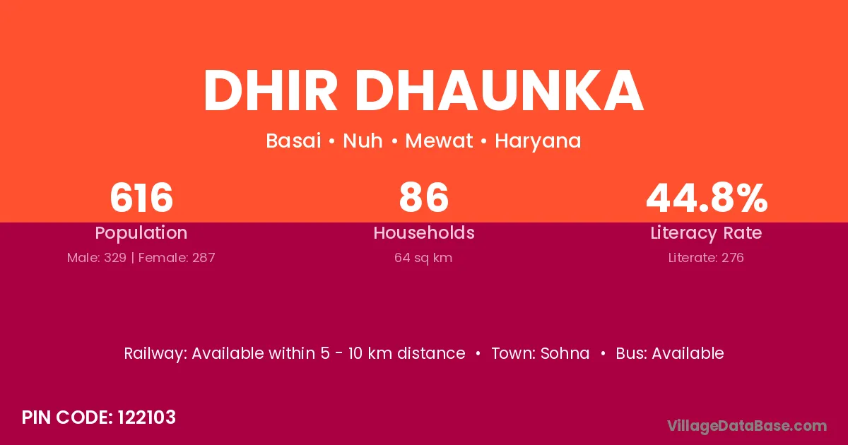 Sohna is the nearest town to Dhir Dhaunka village for major economic activities