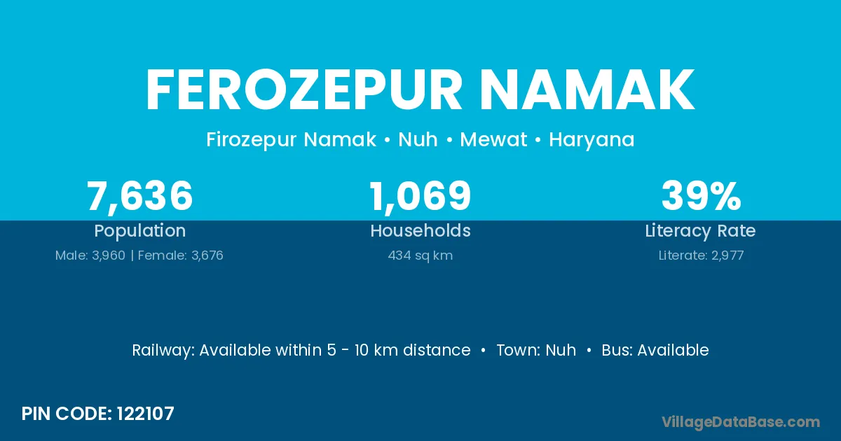 Nuh is the nearest town to Ferozepur Namak village for major economic activities