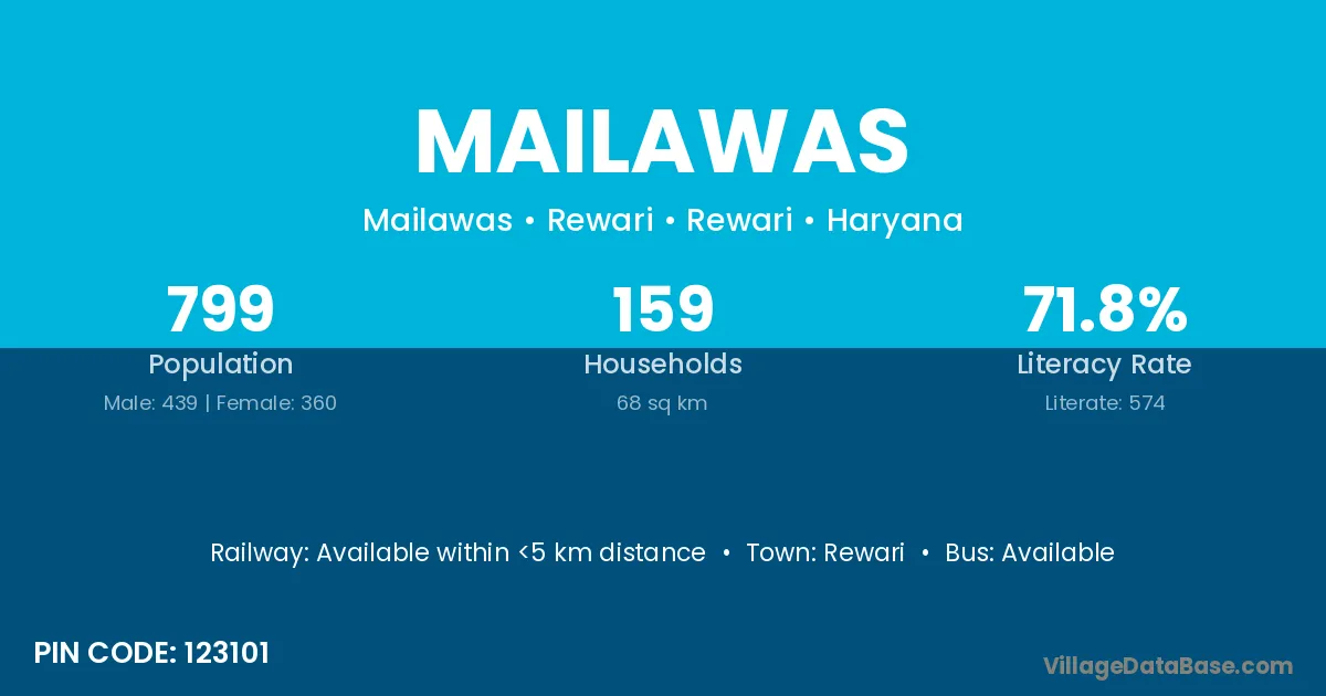 According to Census 2011 information, the village code of Mailawas village is 122103.