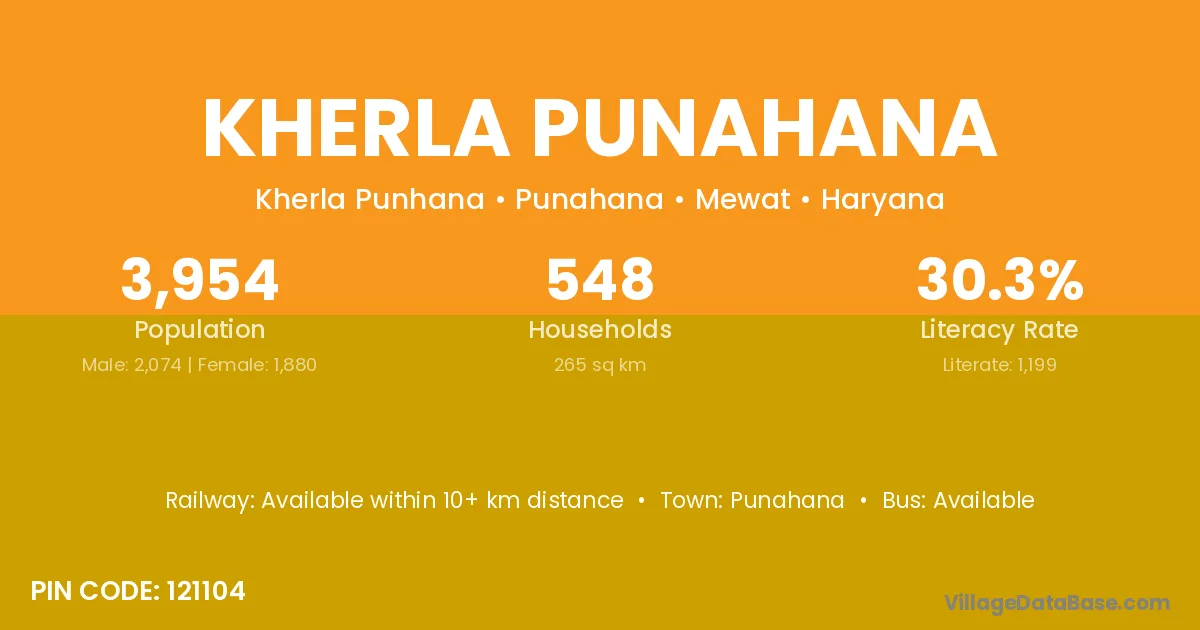 Punahana is the nearest town to Kherla Punahana village for major economic activities