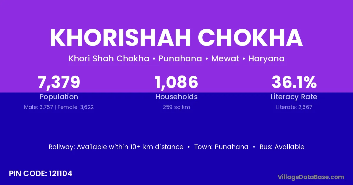 Punahana is the nearest town to Khorishah Chokha village for major economic activities