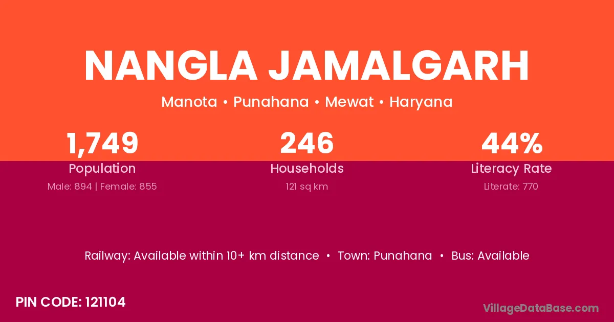 According to Census 2011 information, the village code of Nangla Jamalgarh village is 121104.