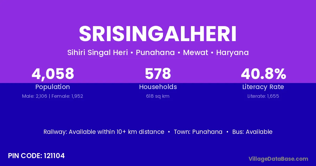 Punahana is the nearest town to Srisingalheri village for major economic activities