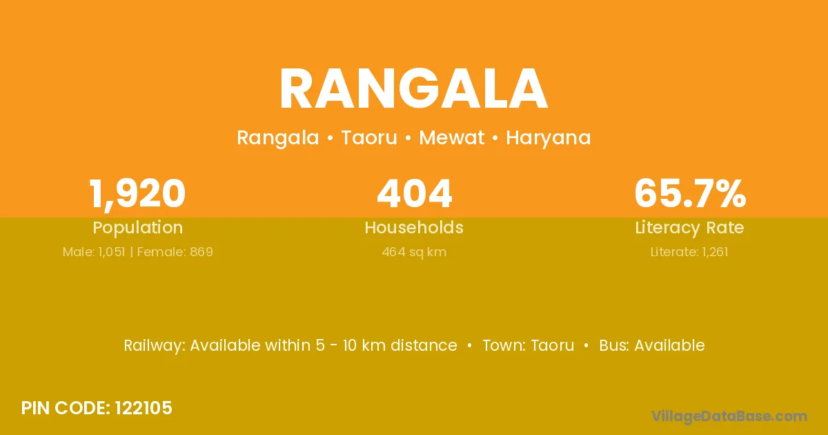 Rangala village has a total population of 1,920 people, of which 1,051 are males and 869 are females.