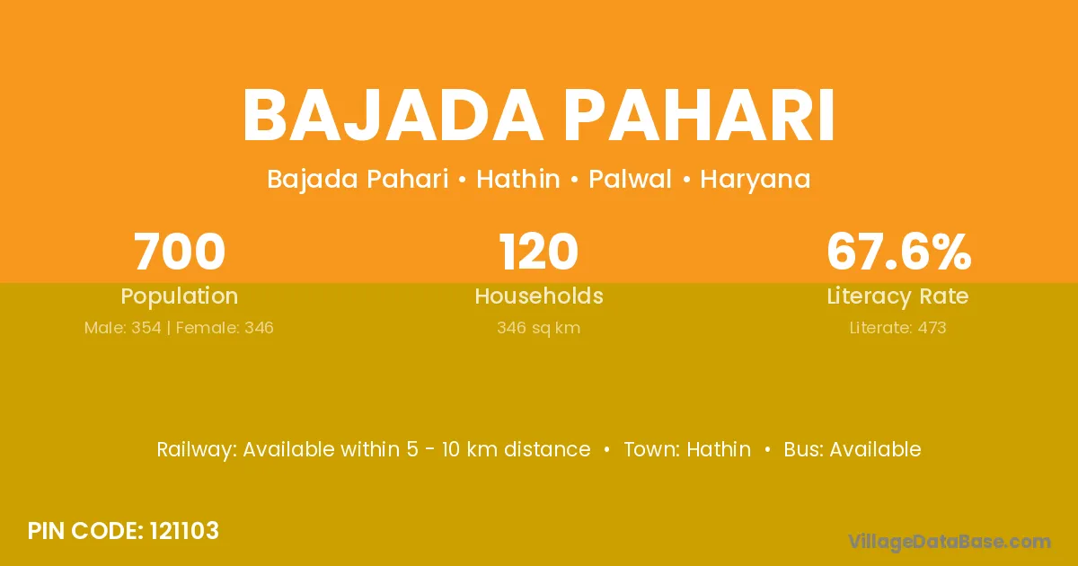 Hathin is the nearest town to Bajada Pahari village for major economic activities