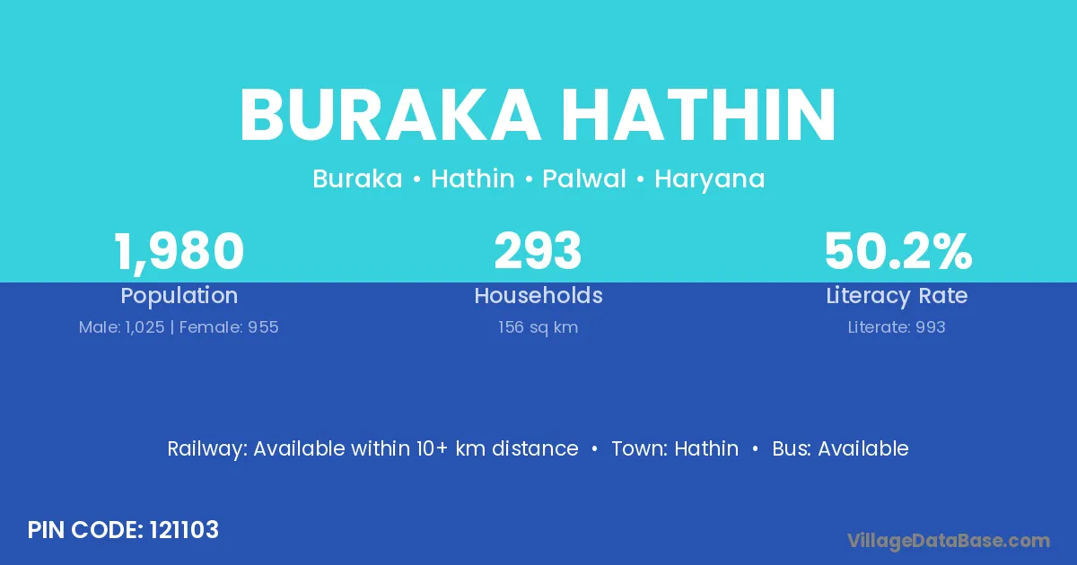 Hathin is the nearest town to Buraka Hathin village for major economic activities