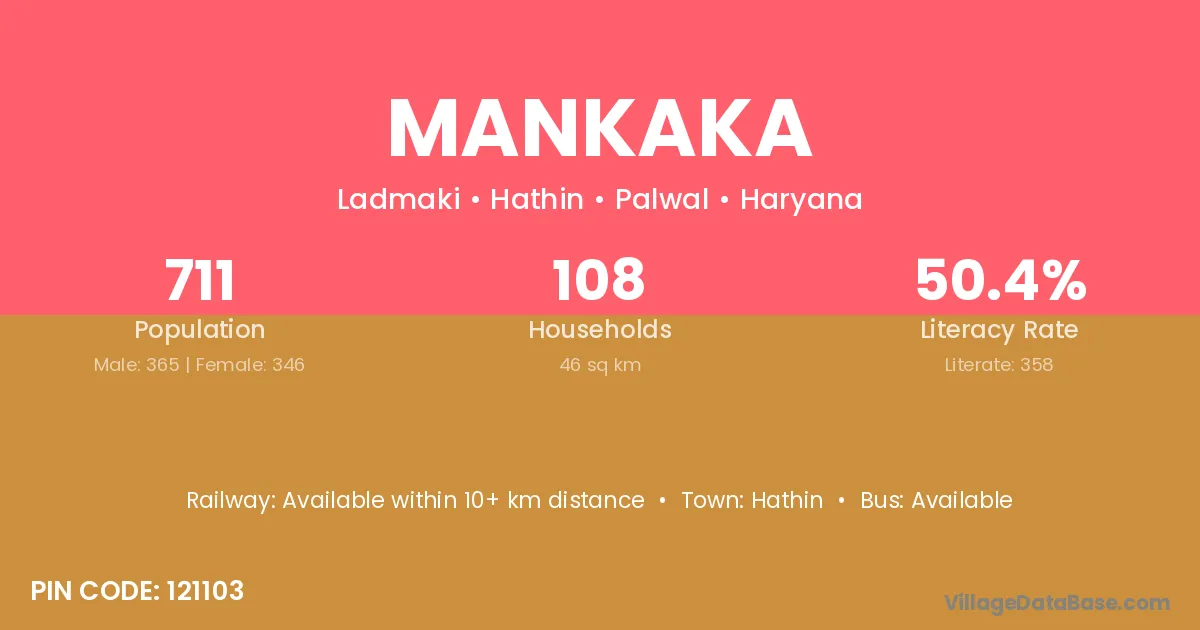 Mankaka village is located in the Hathin Tehsil of the Palwal district in Haryana .