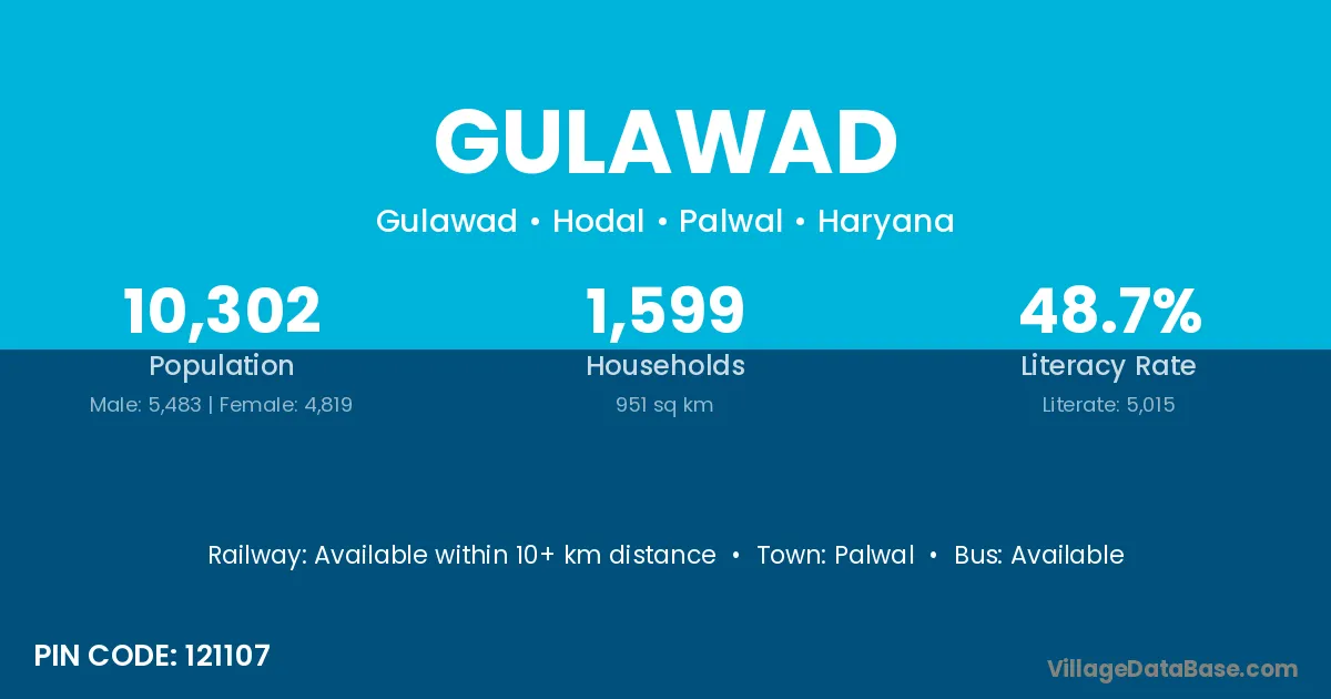 Palwal is the nearest town to Gulawad village for major economic activities
