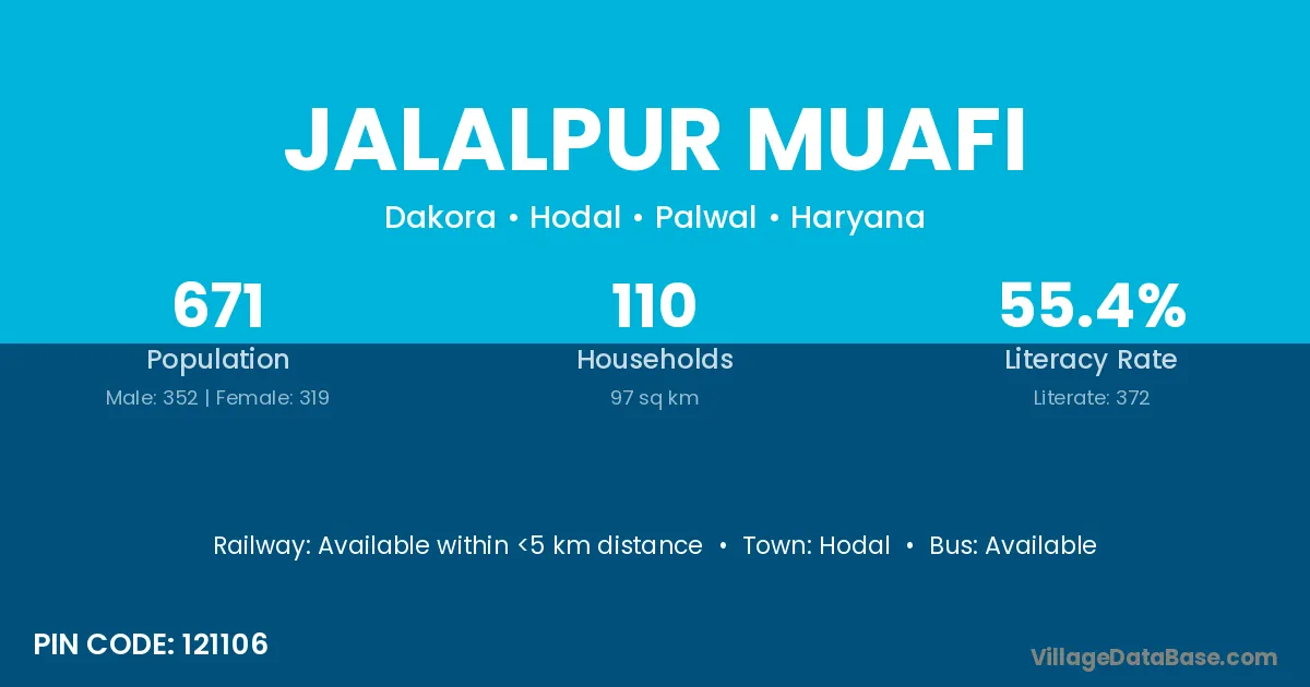 Jalalpur Muafi village has a total population of 671 people, of which 352 are males and 319 are females.