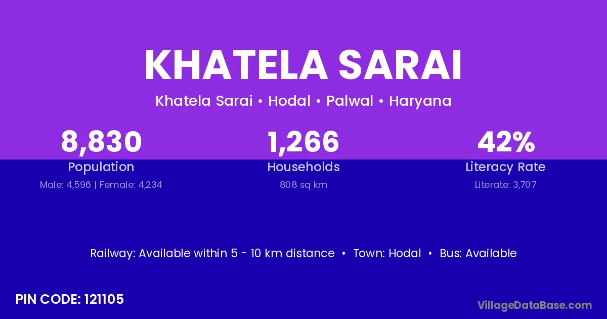 Hodal is the nearest town to Khatela Sarai village for major economic activities