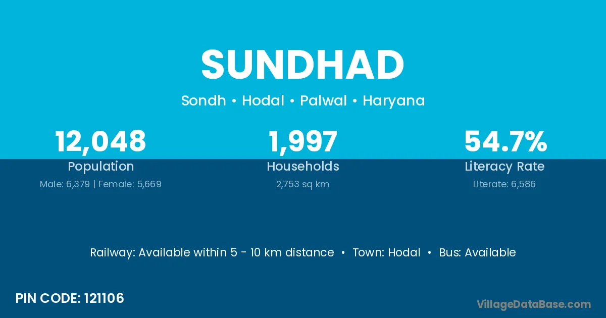 Sundhad village has a total population of 12,048 people, of which 6,379 are males and 5,669 are females.