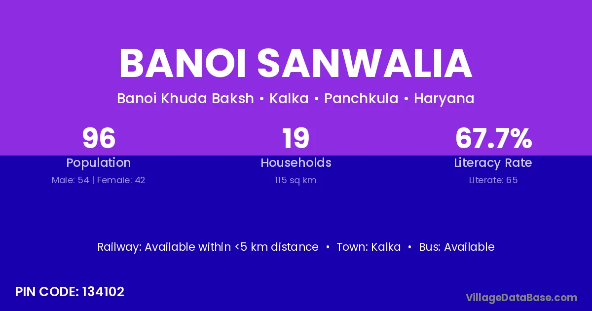 Kalka is the nearest town to Banoi Sanwalia village for major economic activities