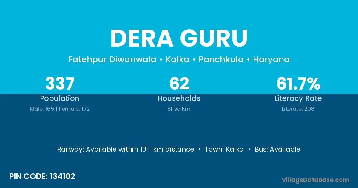 Kalka is the nearest town to Dera Guru village for major economic activities