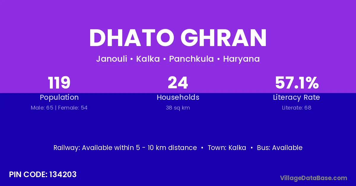Dhato Ghran village has a total population of 119 people, of which 65 are males and 54 are females.