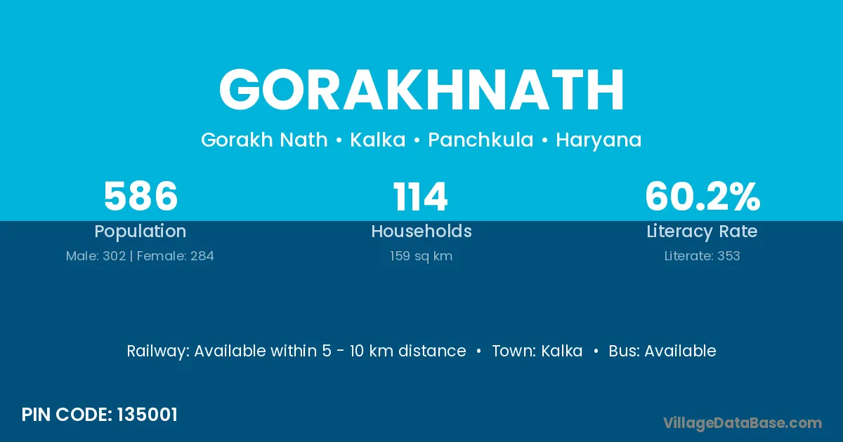 Gorakhnath village has a total population of 586 people, of which 302 are males and 284 are females.