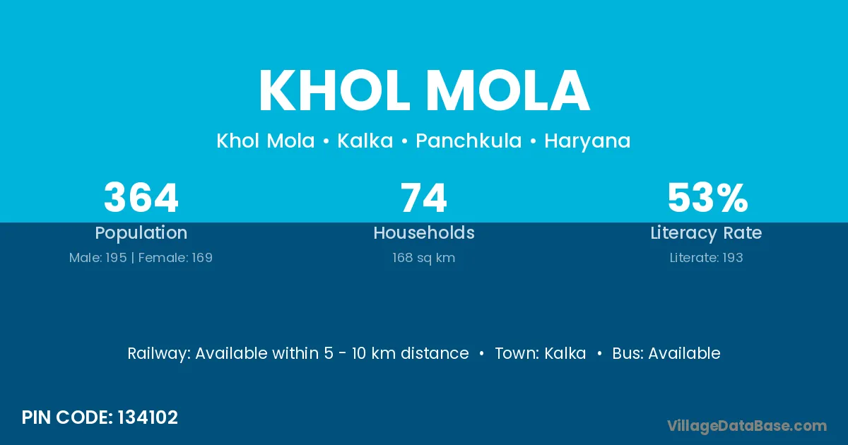 Khol Mola village has a total population of 364 people, of which 195 are males and 169 are females.