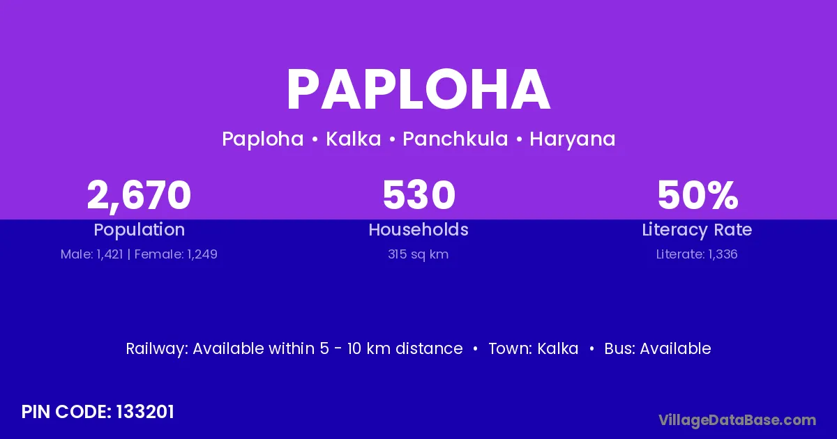 According to Census 2011 information, the village code of Paploha village is 133201.