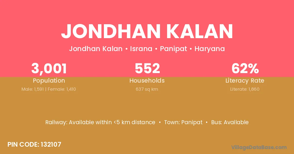 Panipat is the nearest town to Jondhan Kalan village for major economic activities
